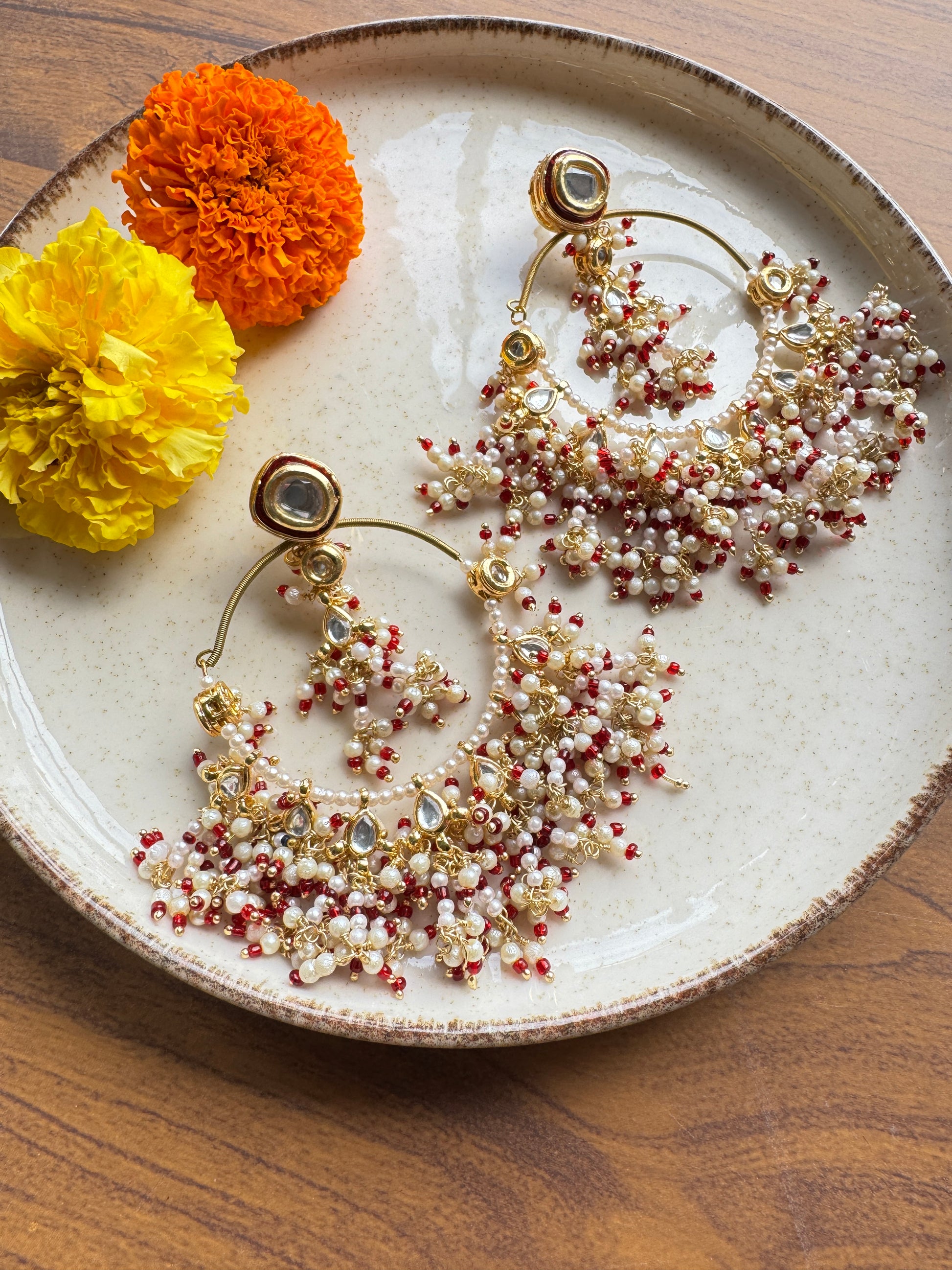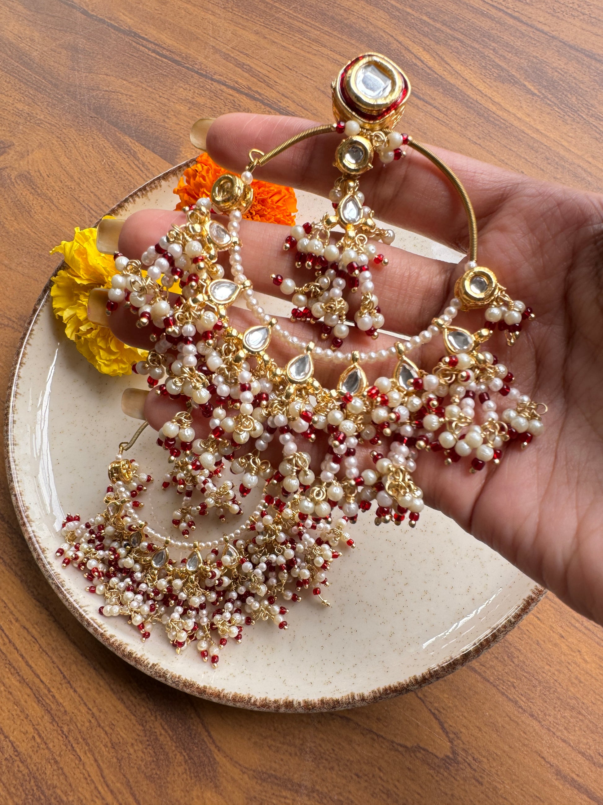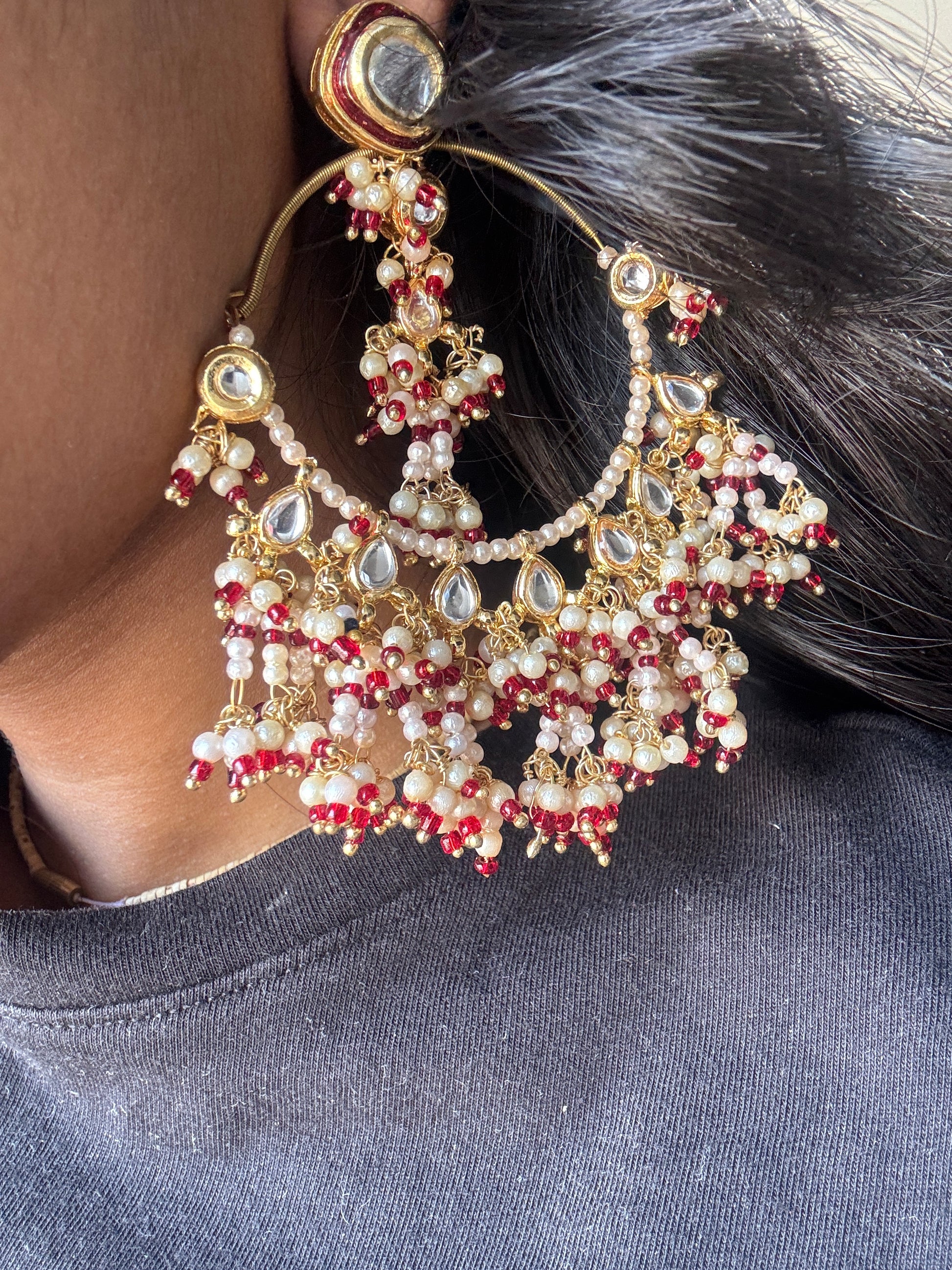 This pair of Kriti Balli earrings beautifully enhances any ethnic outfit with its elegant design and intricate details. Made with high quality materials, these earrings add a touch of sophistication to any look. Perfect for a formal event or as a statement piece for everyday wear.