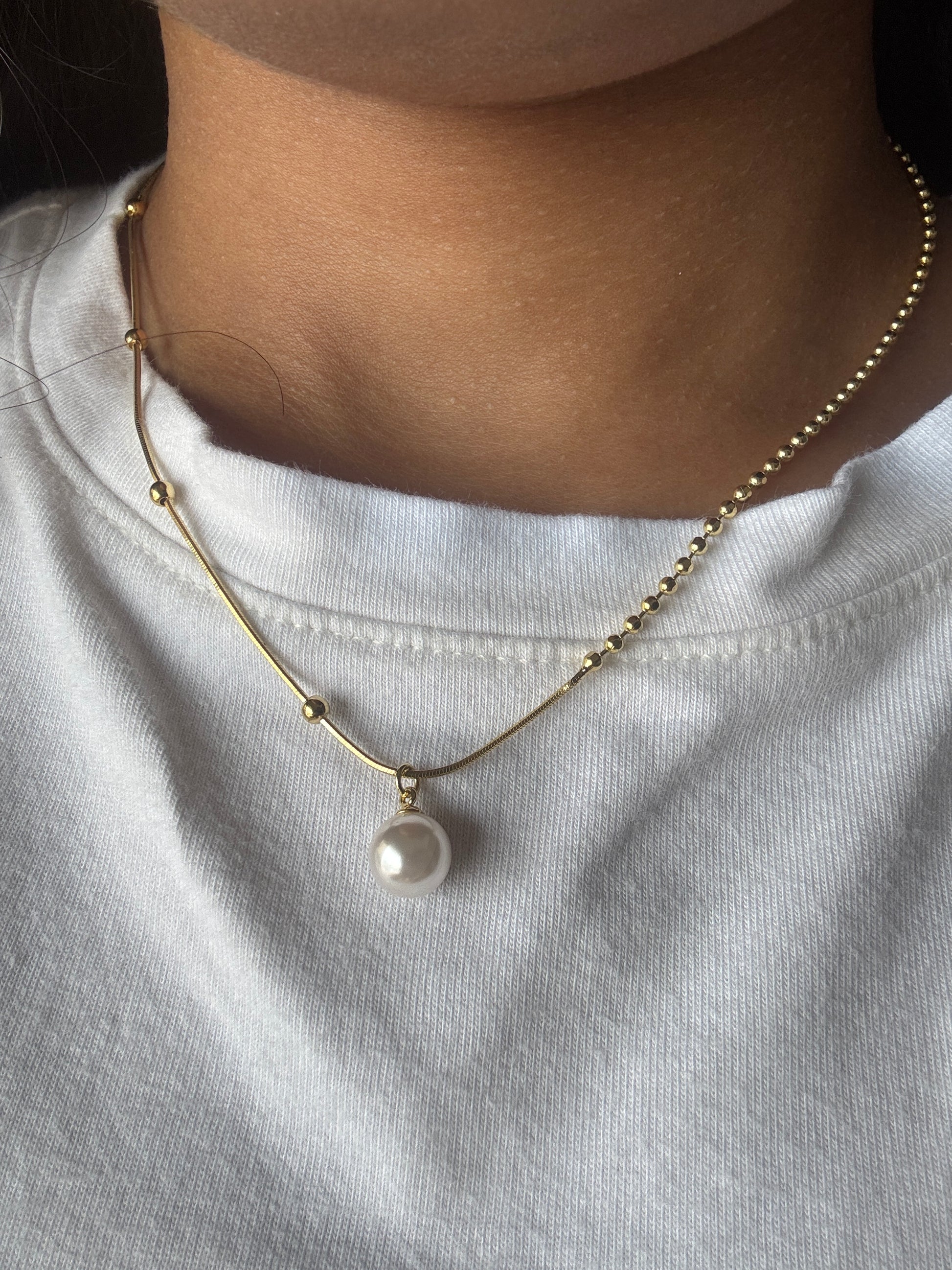 The Moue Necklace features a stunning strand of lustrous pearls, a timeless classic that adds elegance and sophistication to any outfit. The perfect accessory for a special occasion or to elevate your everyday look. Expertly crafted and versatile, this necklace is a must-have for any jewelry collection.